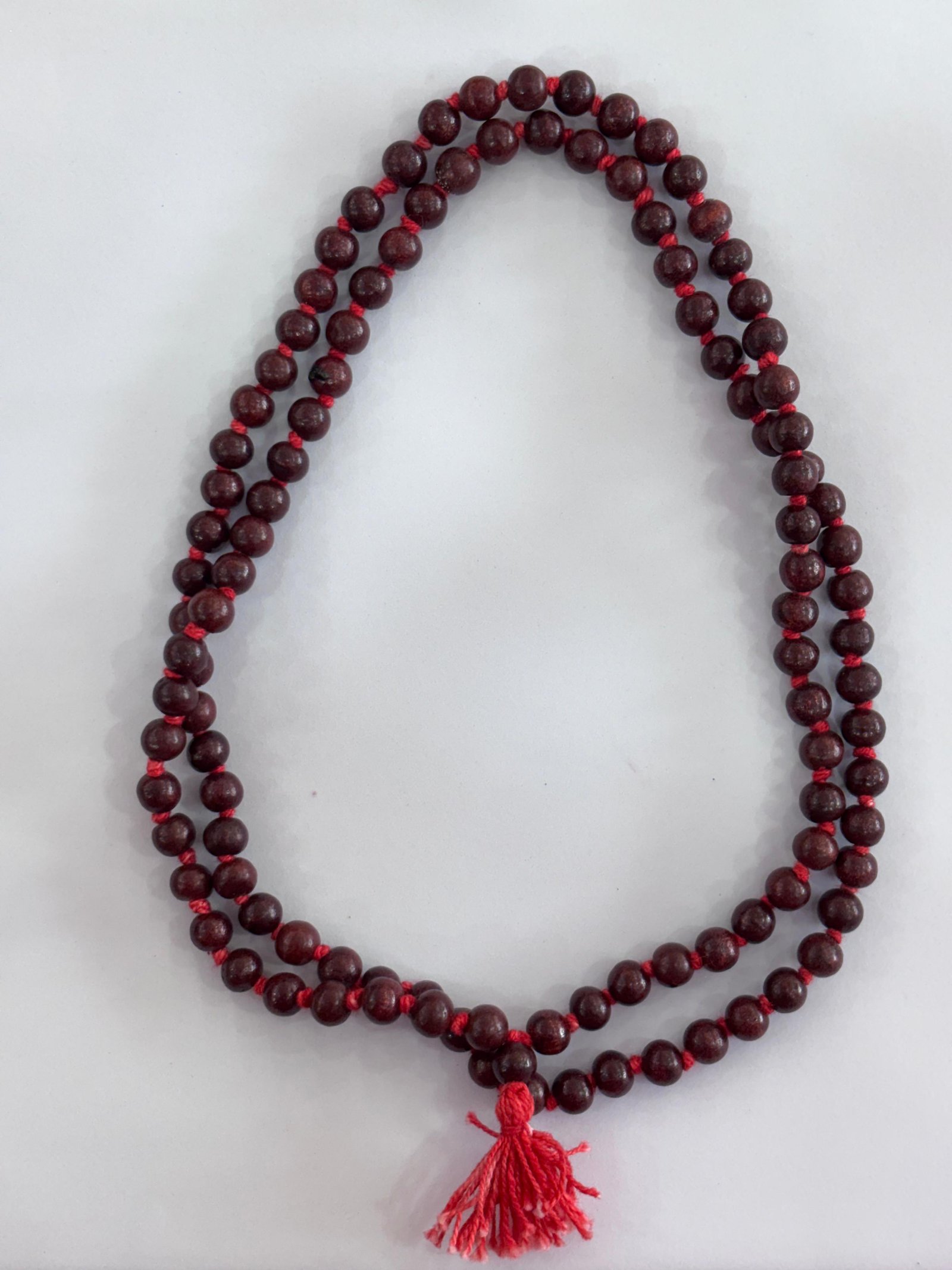 लाल चन्दन को रक्त चन्दन व देवी चन्दन के नाम से भी जानते हैं । इस माला पर किया गया जाप सभी देवियों के लिए अति उत्तम माना गया है । इसे धारण करने वाले व्यक्ति के उपर सभी देविियों कि अति कृृपा बनी रहती है ।