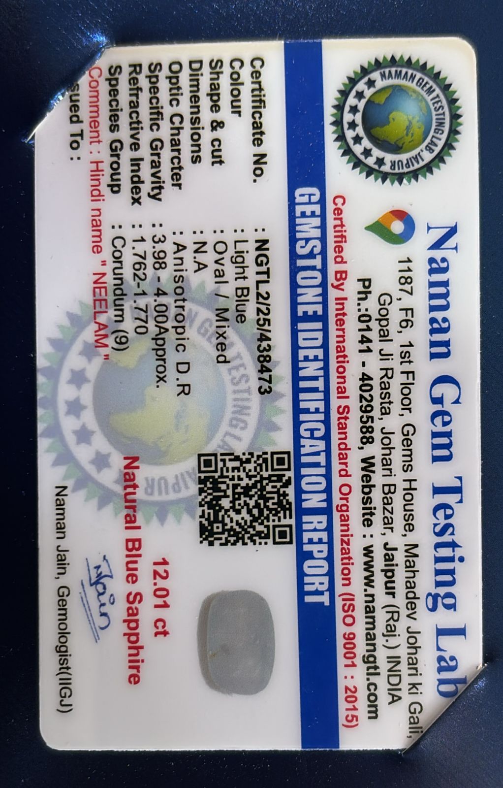 WEIGHT : 12.01 CARRAT (कैरेट)