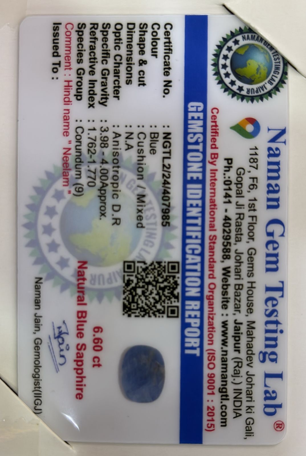 Blue Sapphire (नीलम)