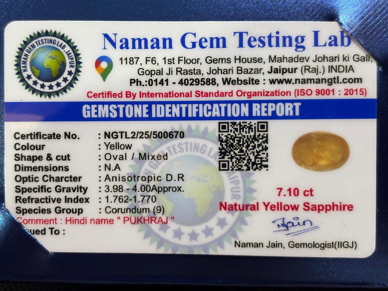 WEIGHT : 7.10 CARRAT (कैरेट)
