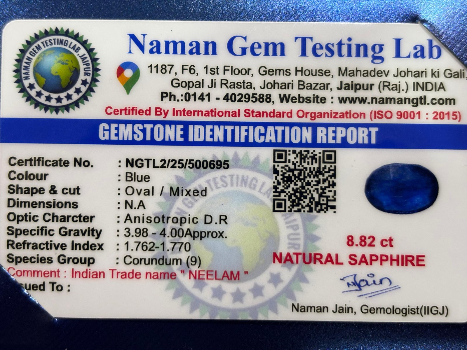 WEIGHT : 8.82 CARRAT (कैरेट)