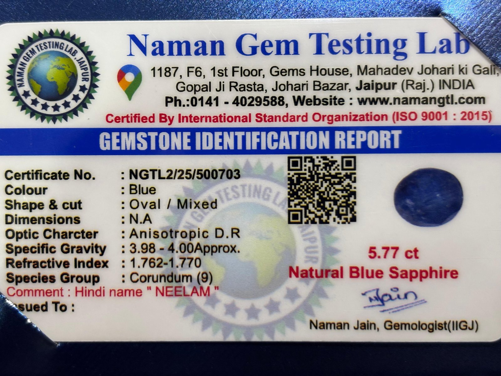 WEIGHT : 5.77 CARRAT (कैरेट)