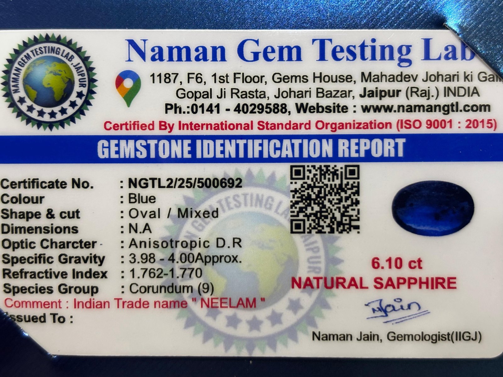 WEIGHT : 6.10 CARRAT (कैरेट)