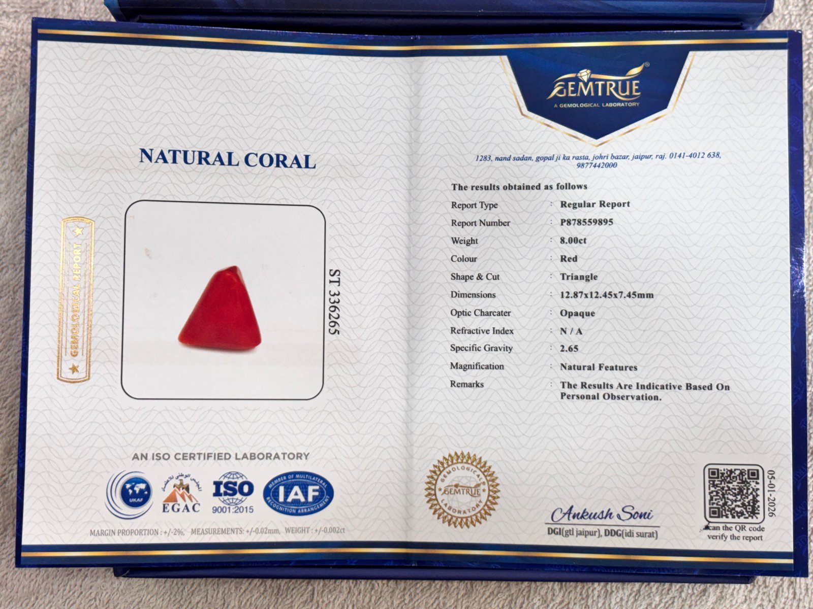 WEIGHT : 8.00 CARRAT (कैरेट)