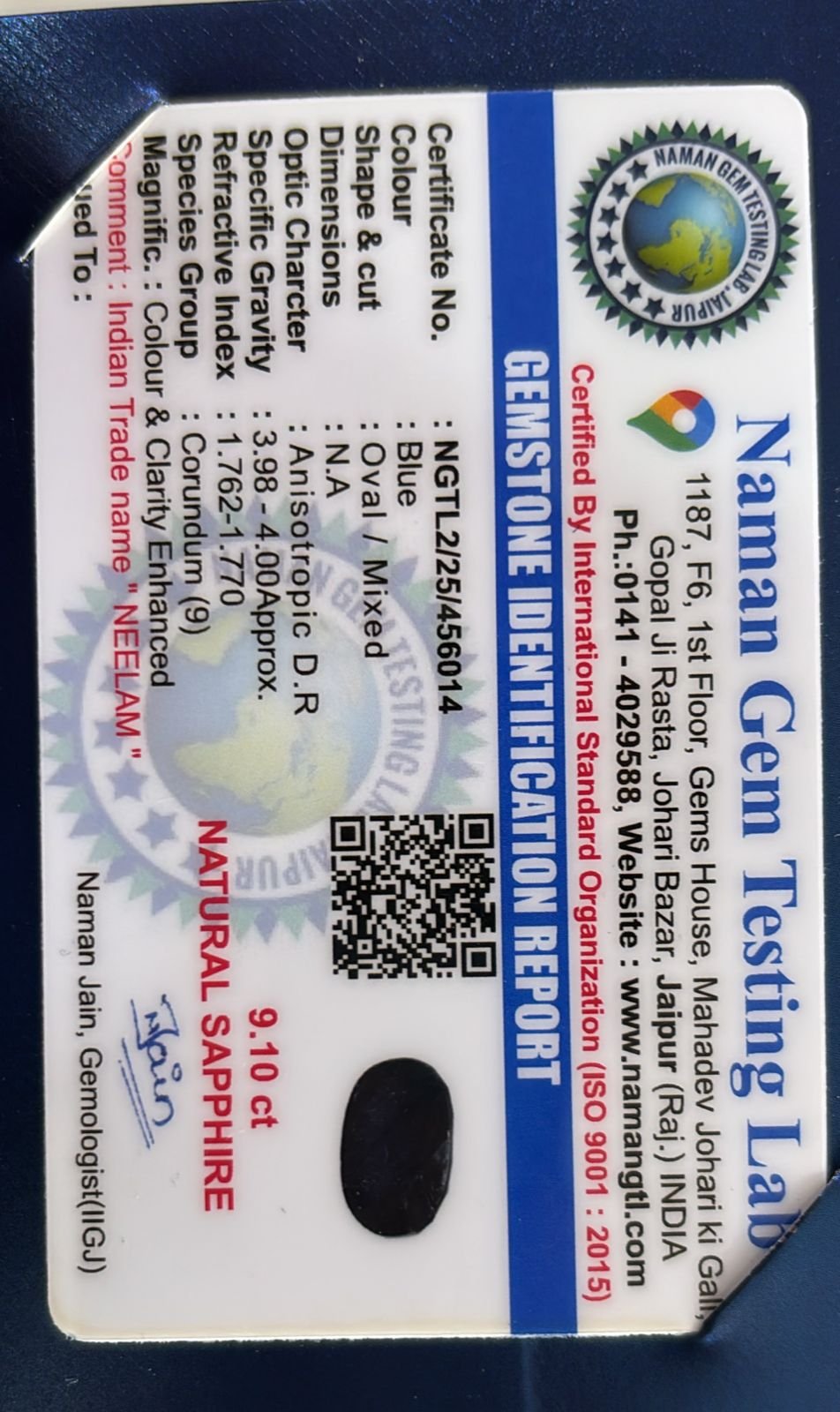 WEIGHT : 9.10 CARRAT (कैरेट)