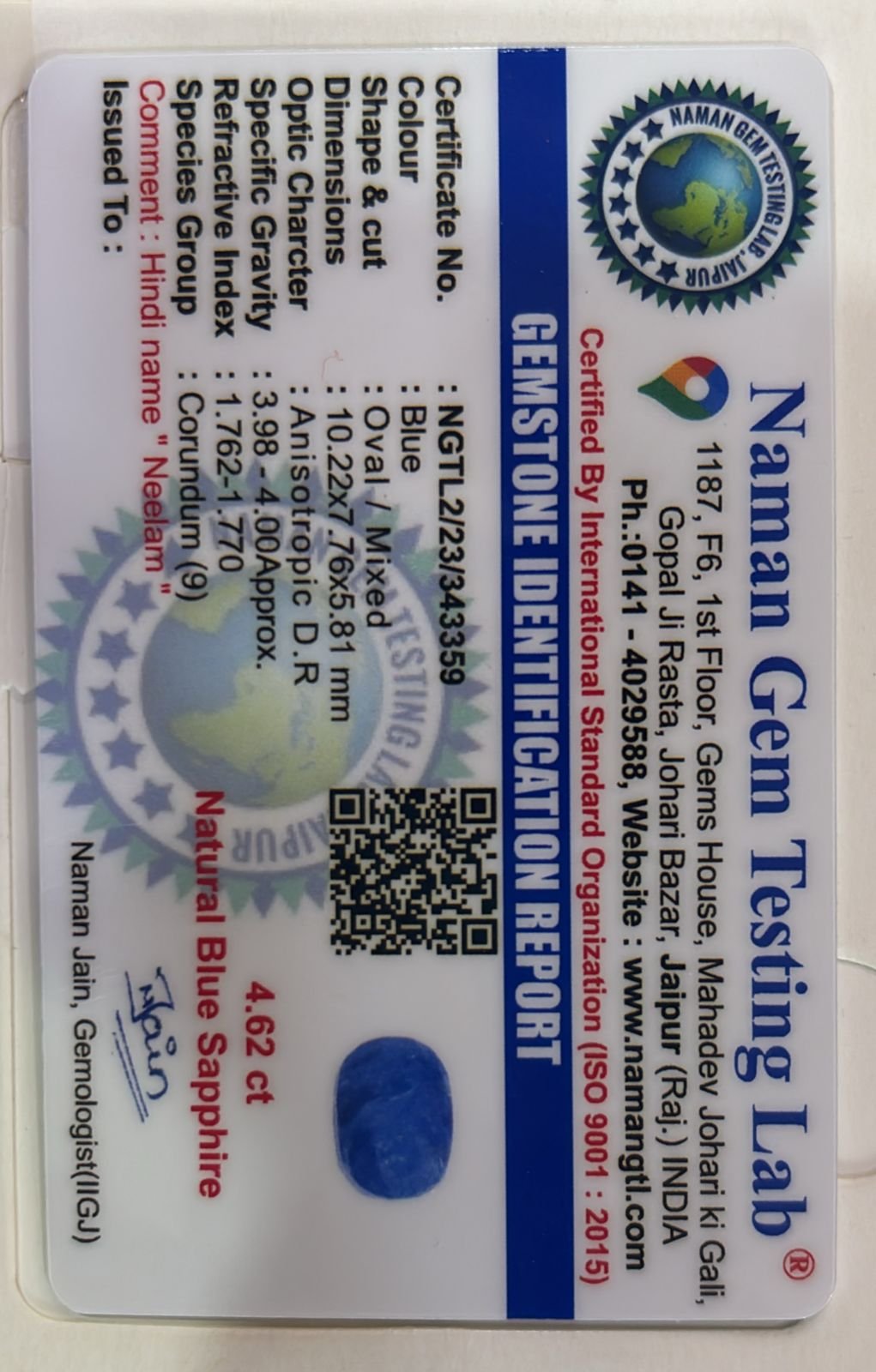 WEIGHT : 4.62 CARRAT (कैरेट)
