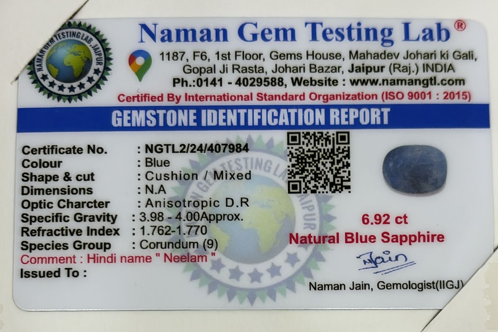 Blue Sapphire (नीलम)