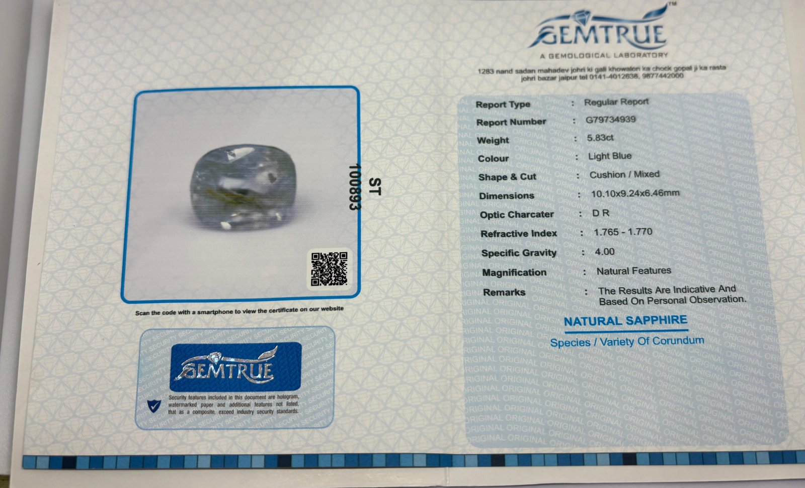 WEIGHT : 5.83 CARRAT (कैरेट)