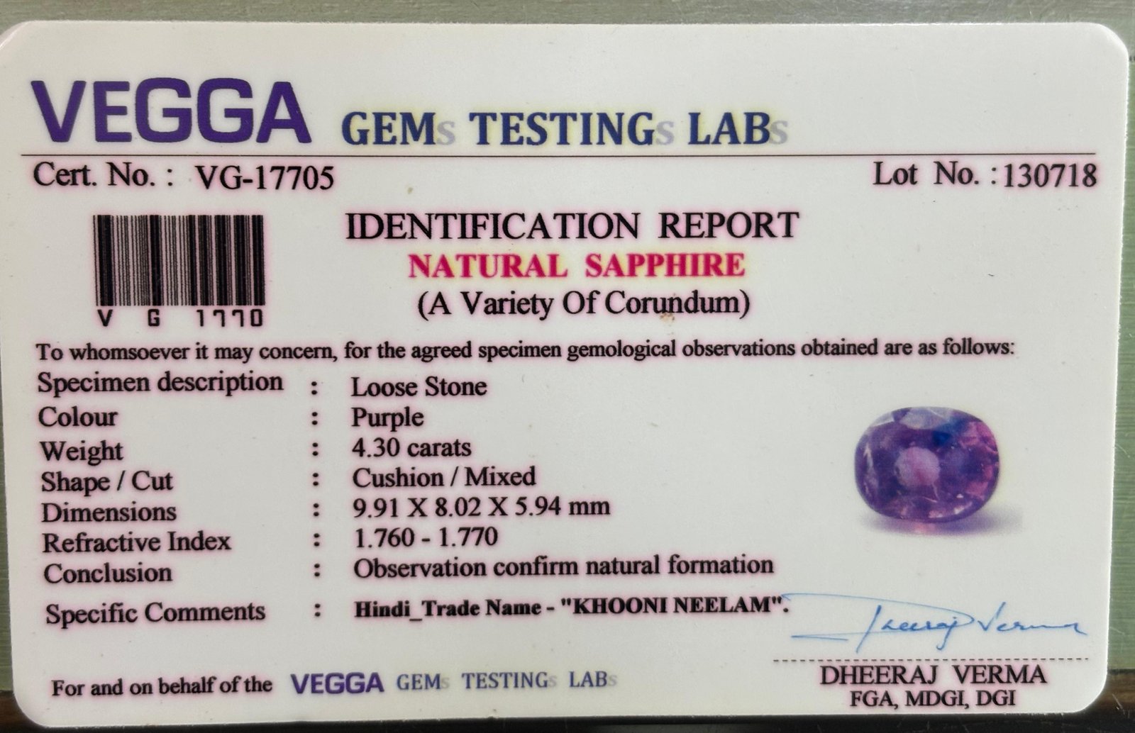 WEIGHT : 4.30 CARRAT (कैरेट)