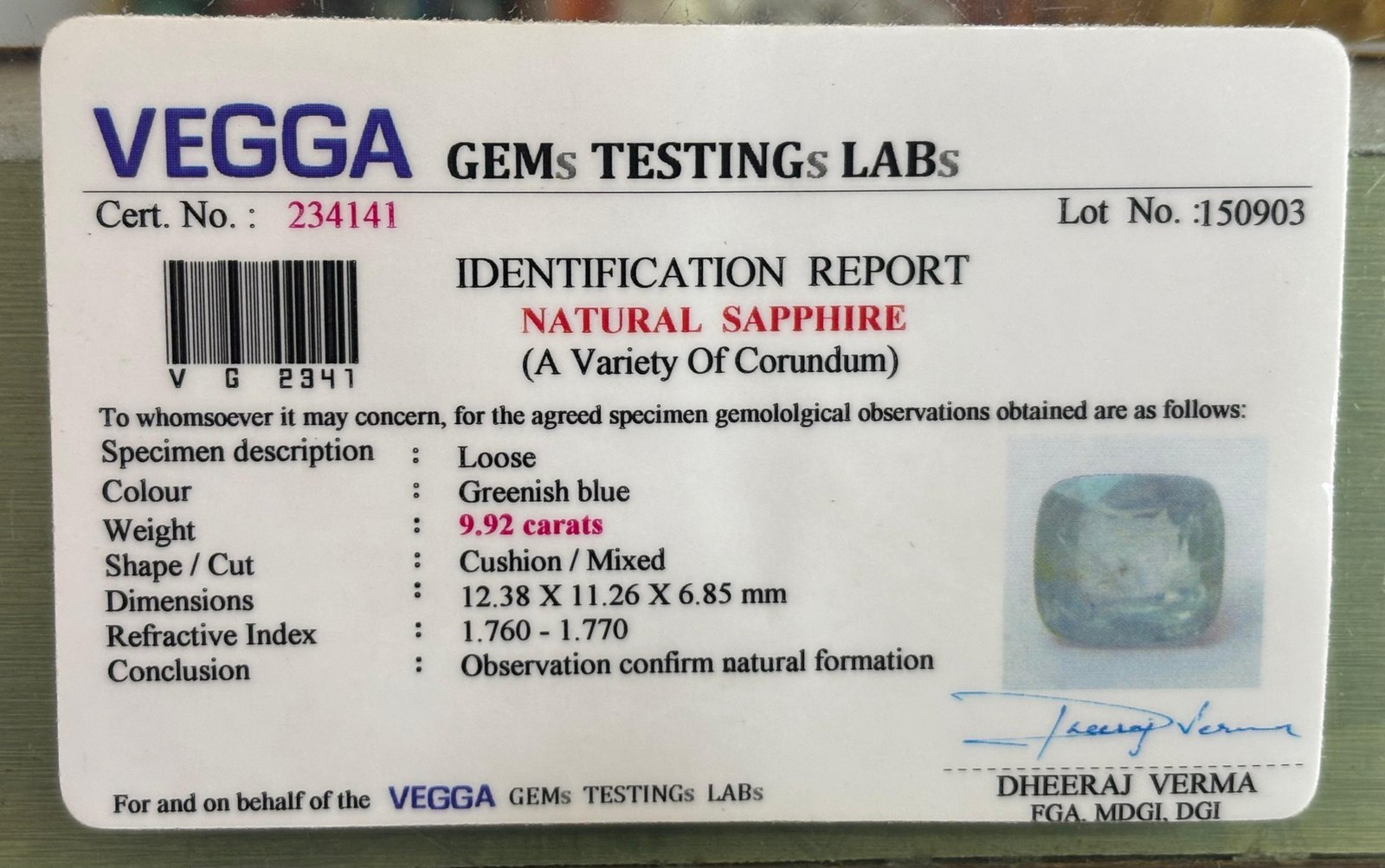 WEIGHT : 9.91 CARRAT (कैरेट)