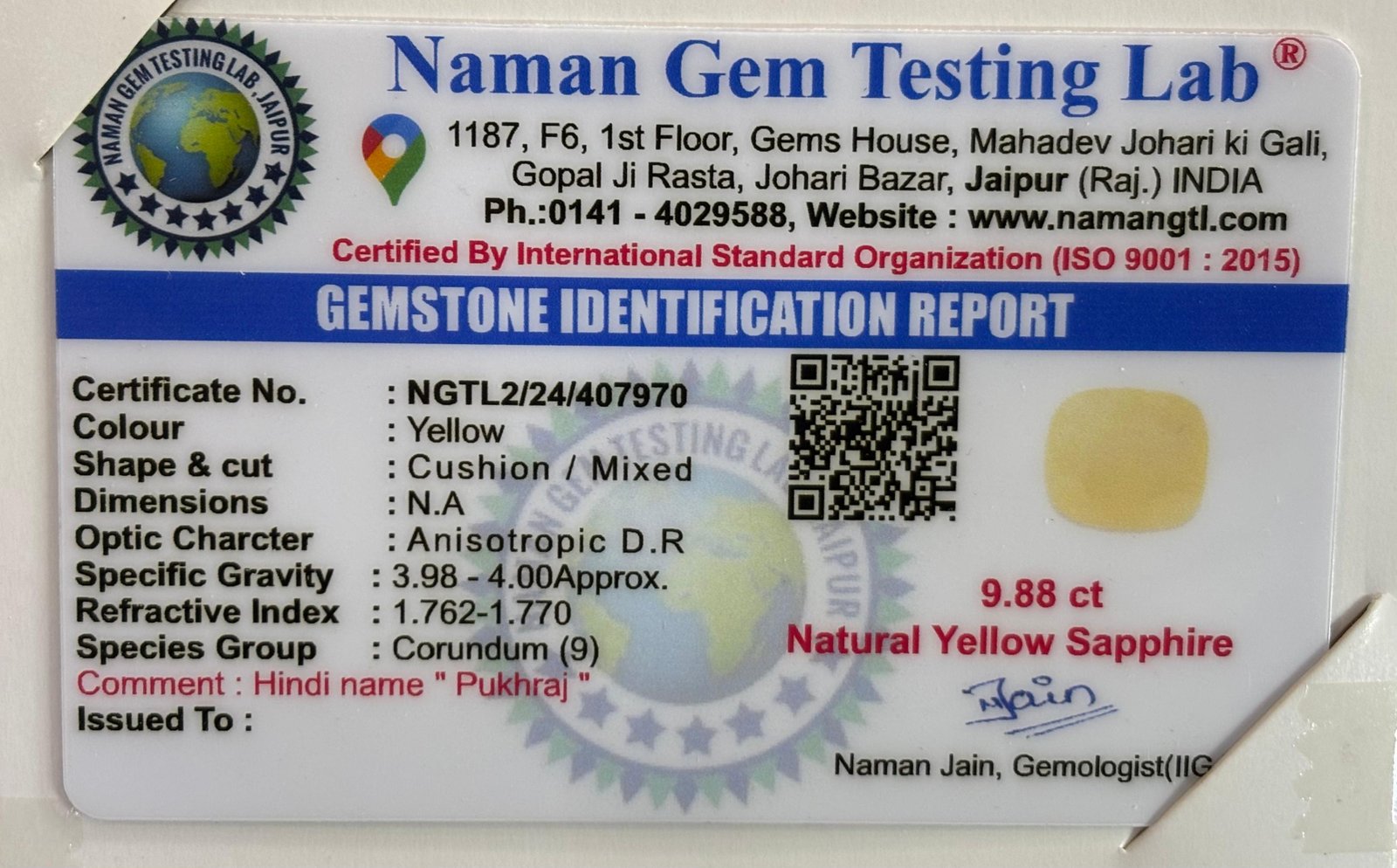 WEIGHT : 9.88 CARRAT (कैरेट)