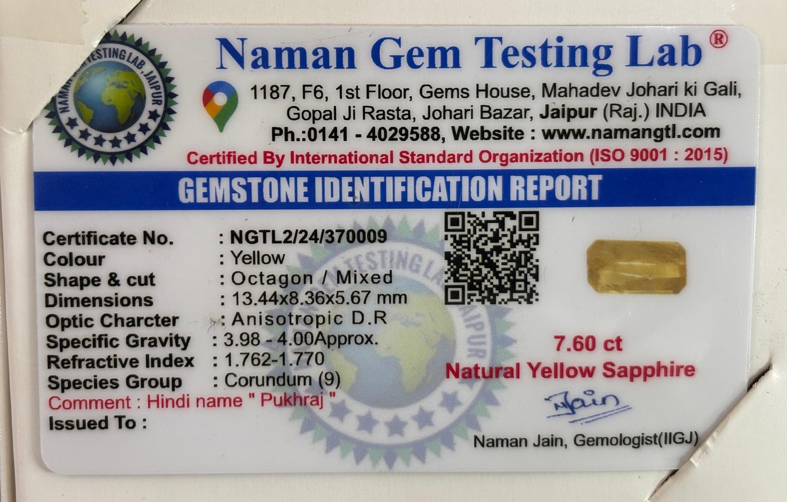 WEIGHT : 7.60 CARRAT (कैरेट)