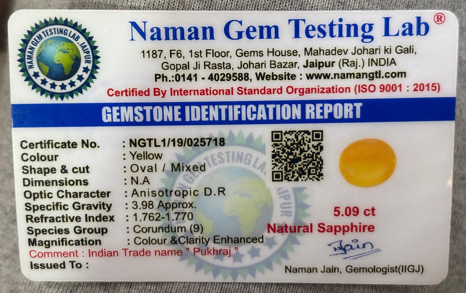WEIGHT : 5.09 CARRAT (कैरेट)