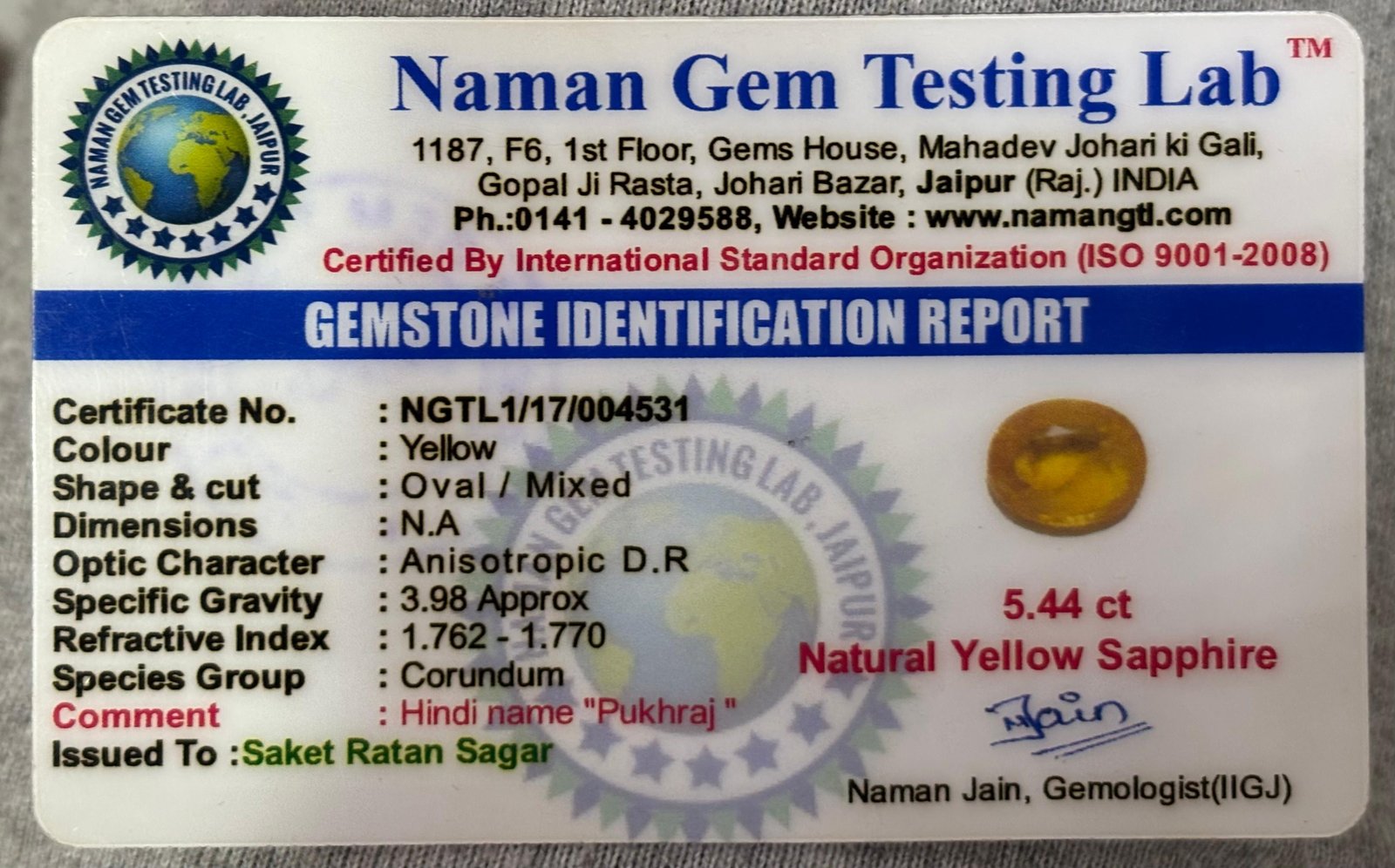 WEIGHT : 5.44 CARRAT (कैरेट)