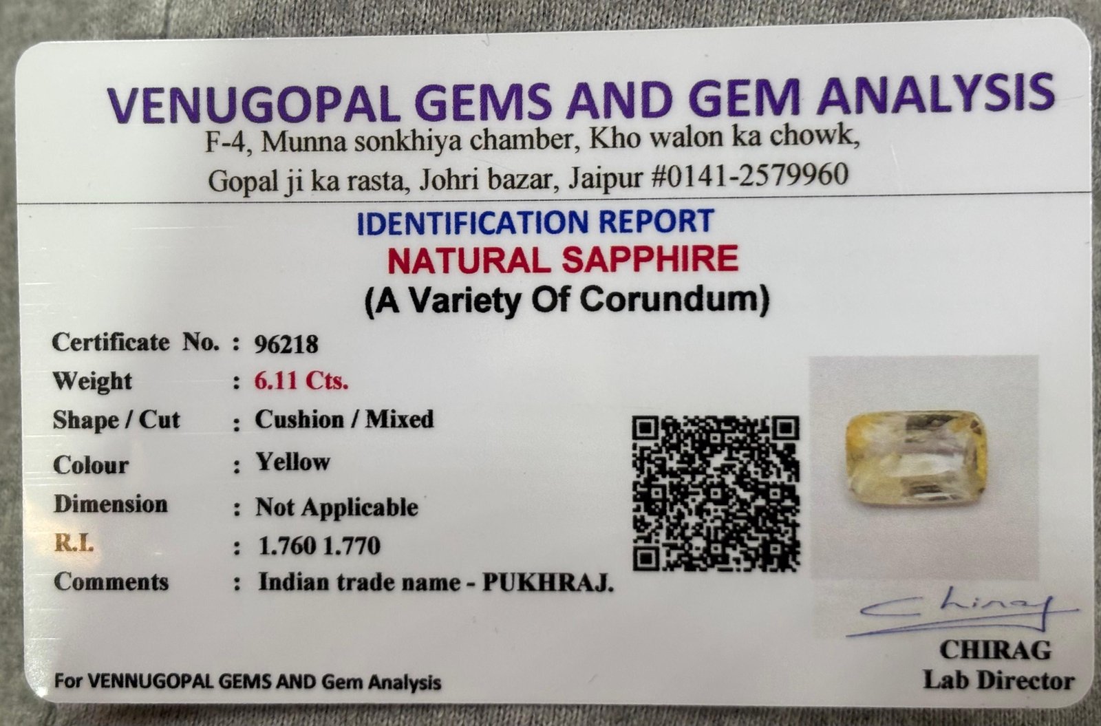 WEIGHT : 6.11 CARRAT (कैरेट)