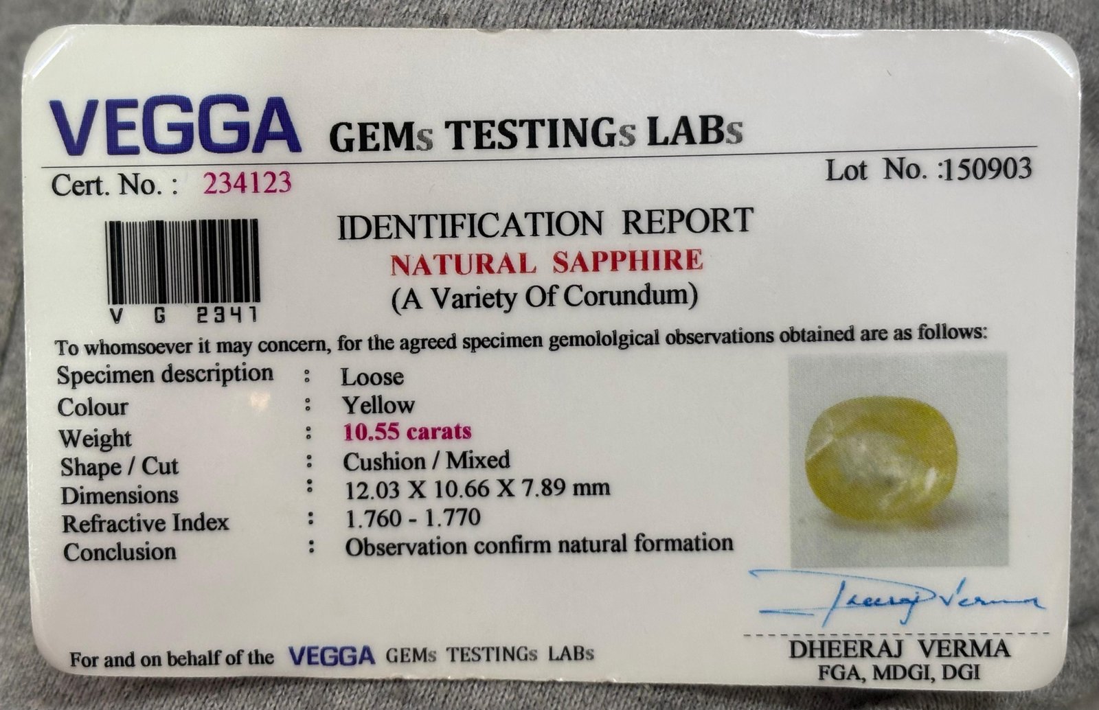 WEIGHT : 10.55 CARRAT (कैरेट)