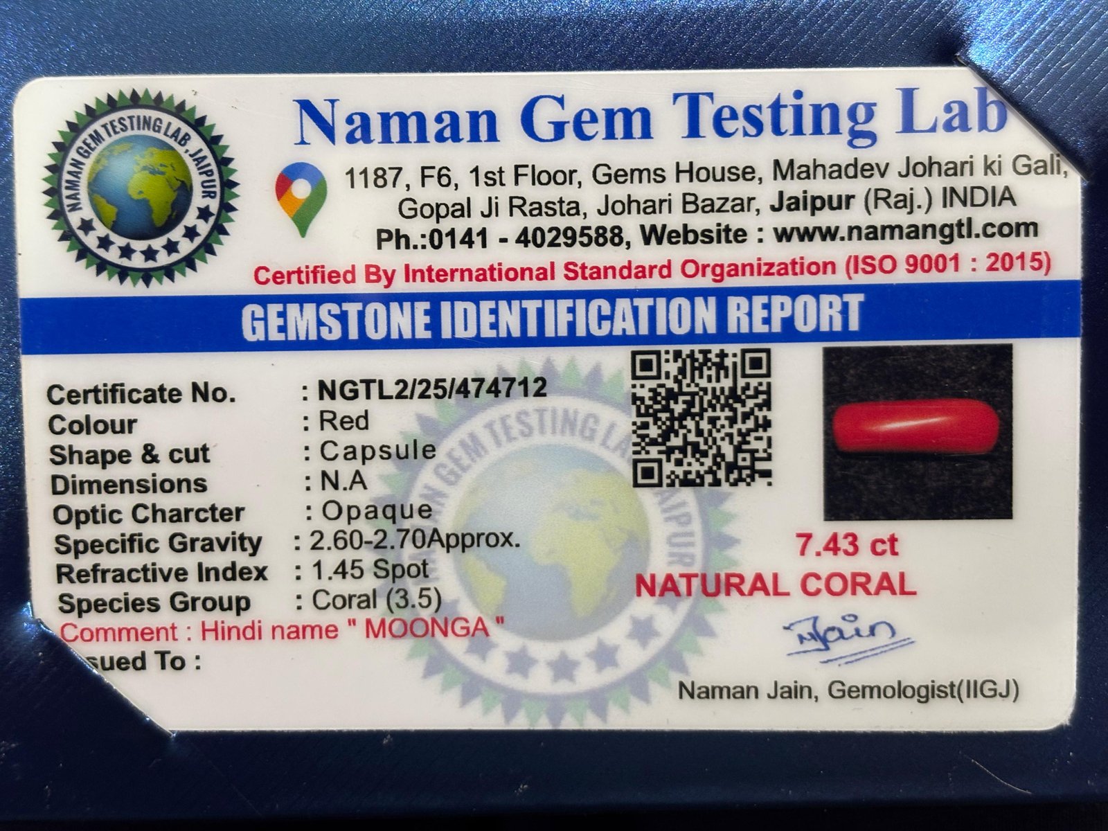 WEIGHT : 7.43 CARRAT (कैरेट)