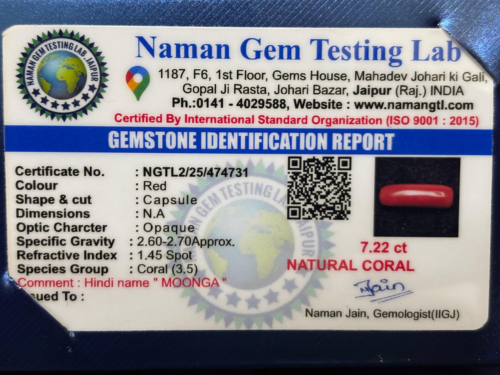 WEIGHT : 7.22 CARRAT (कैरेट)