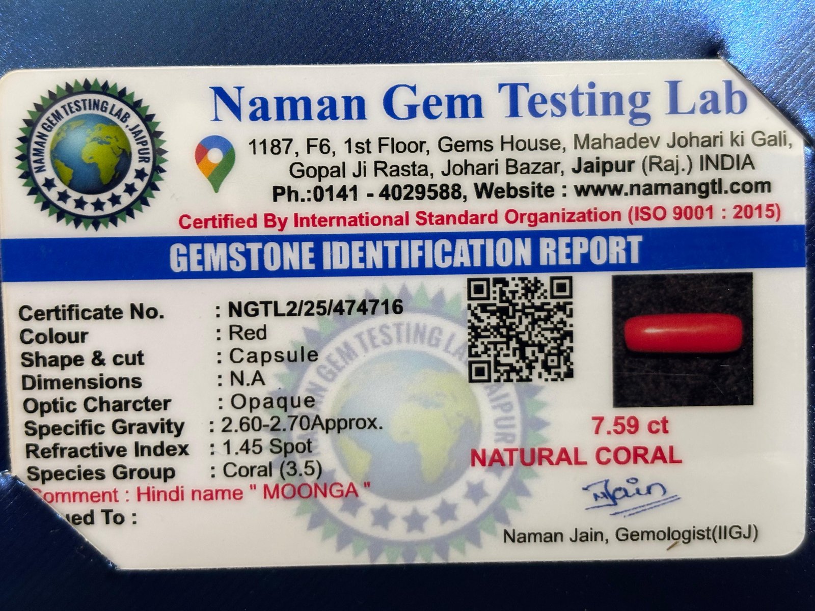 WEIGHT : 7.59 CARRAT (कैरेट)