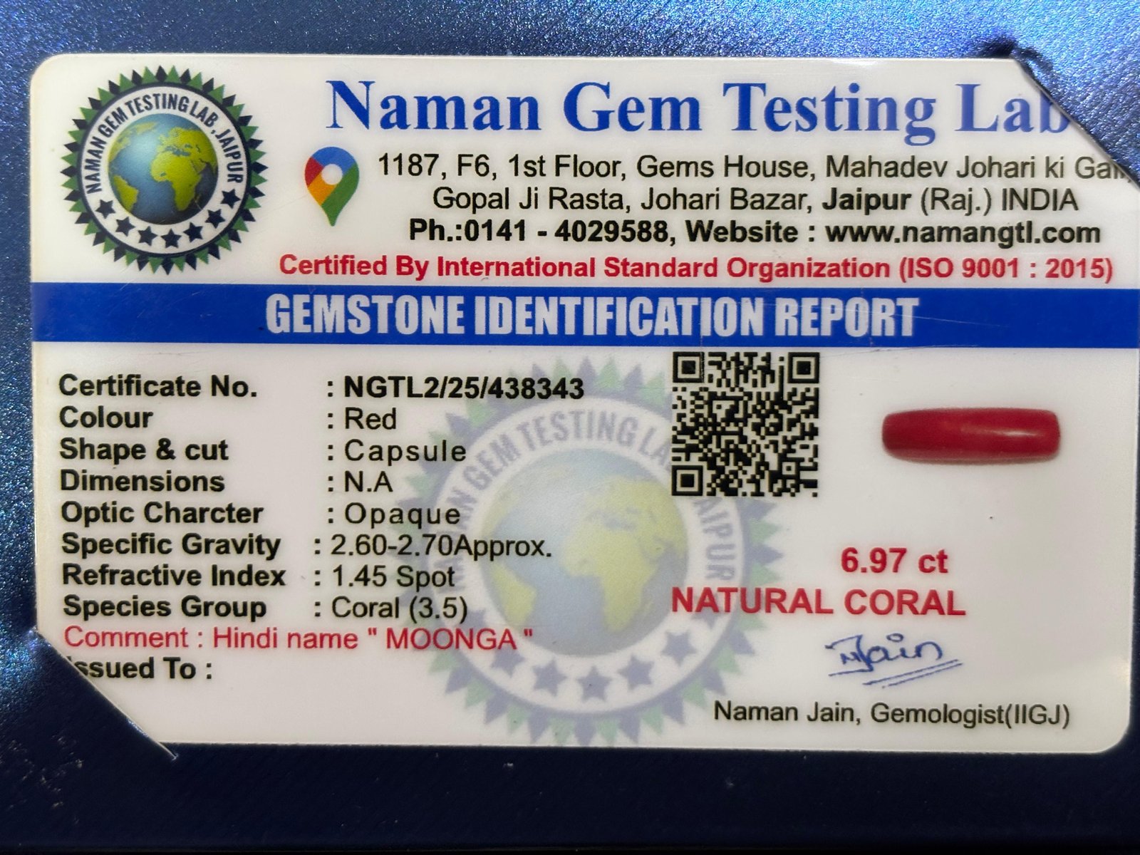 WEIGHT : 6.97 CARRAT (कैरेट)
