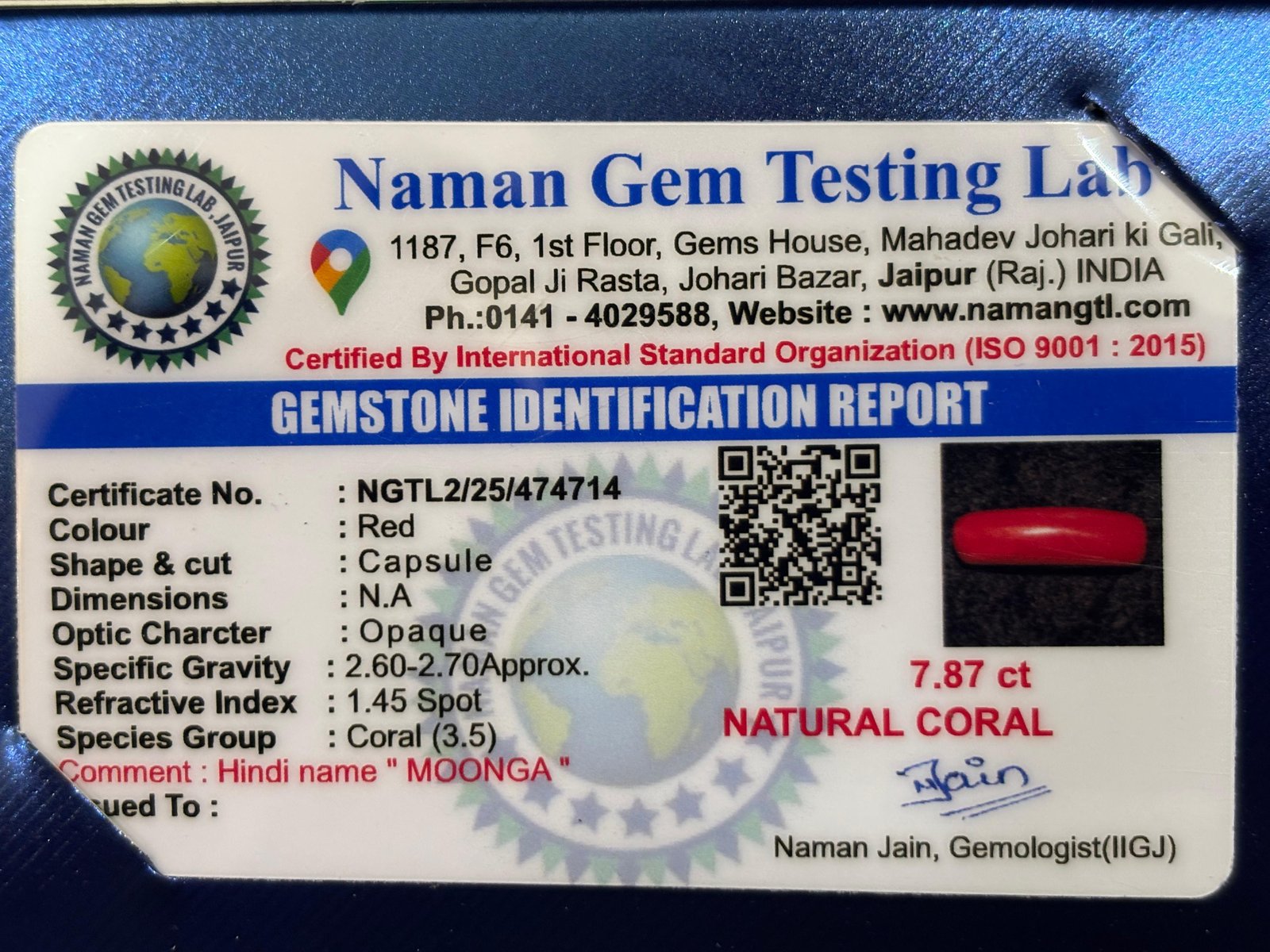 WEIGHT : 7.87 CARRAT (कैरेट)
