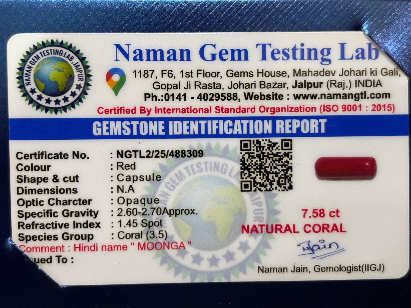 WEIGHT : 7.58 CARRAT (कैरेट)