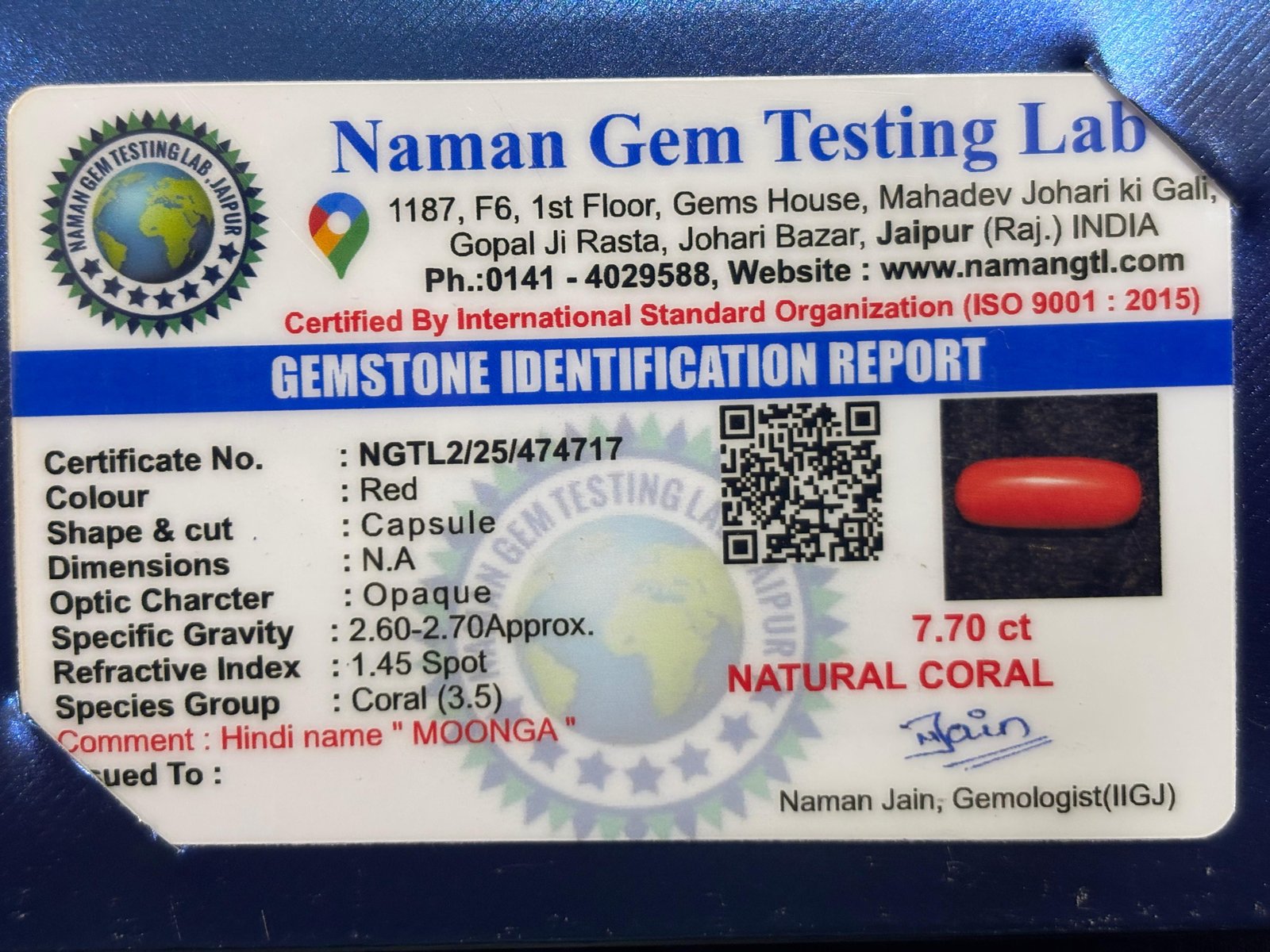 WEIGHT : 7.70 CARRAT (कैरेट)