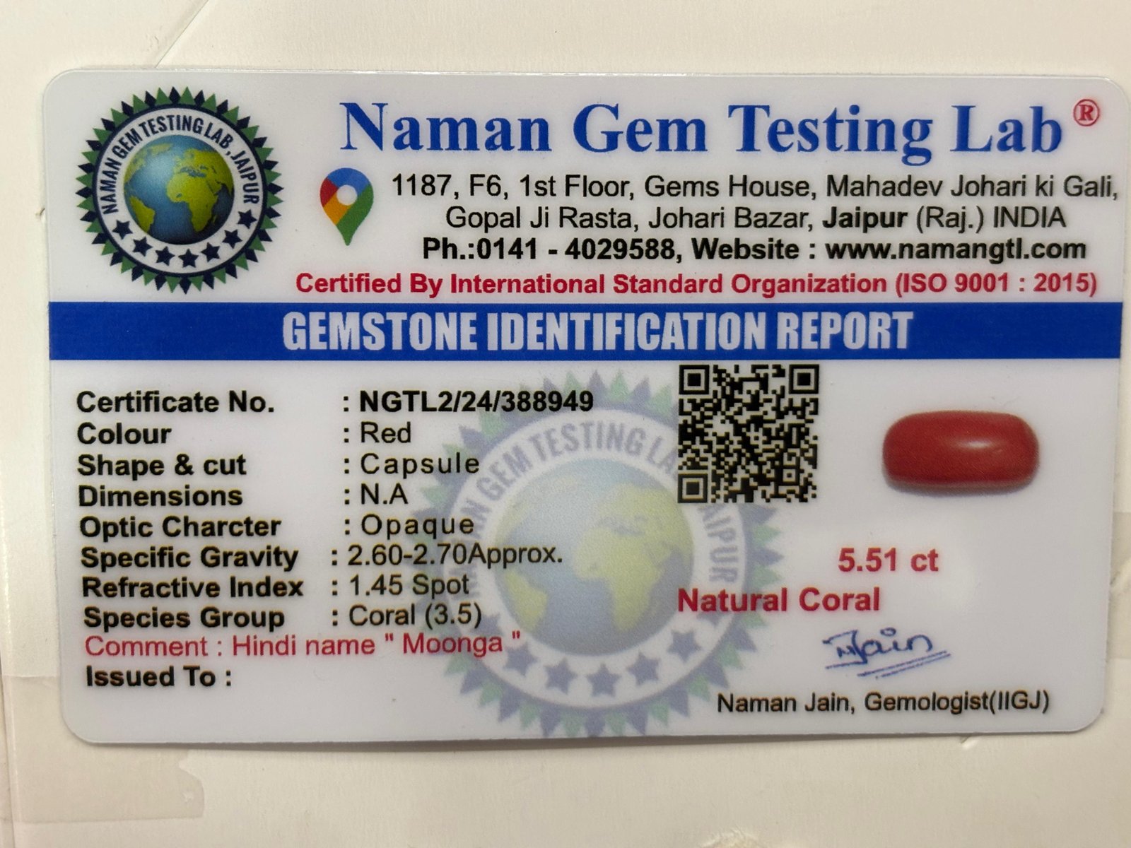 WEIGHT : 5.51 CARRAT (कैरेट)