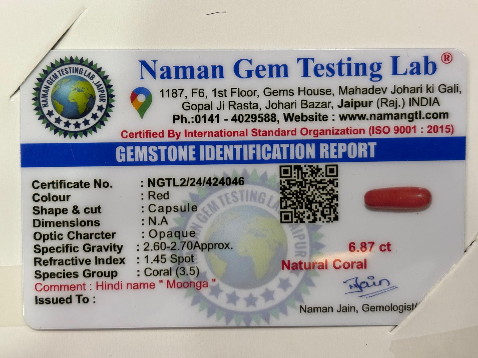 WEIGHT : 6.87 CARRAT (कैरेट)