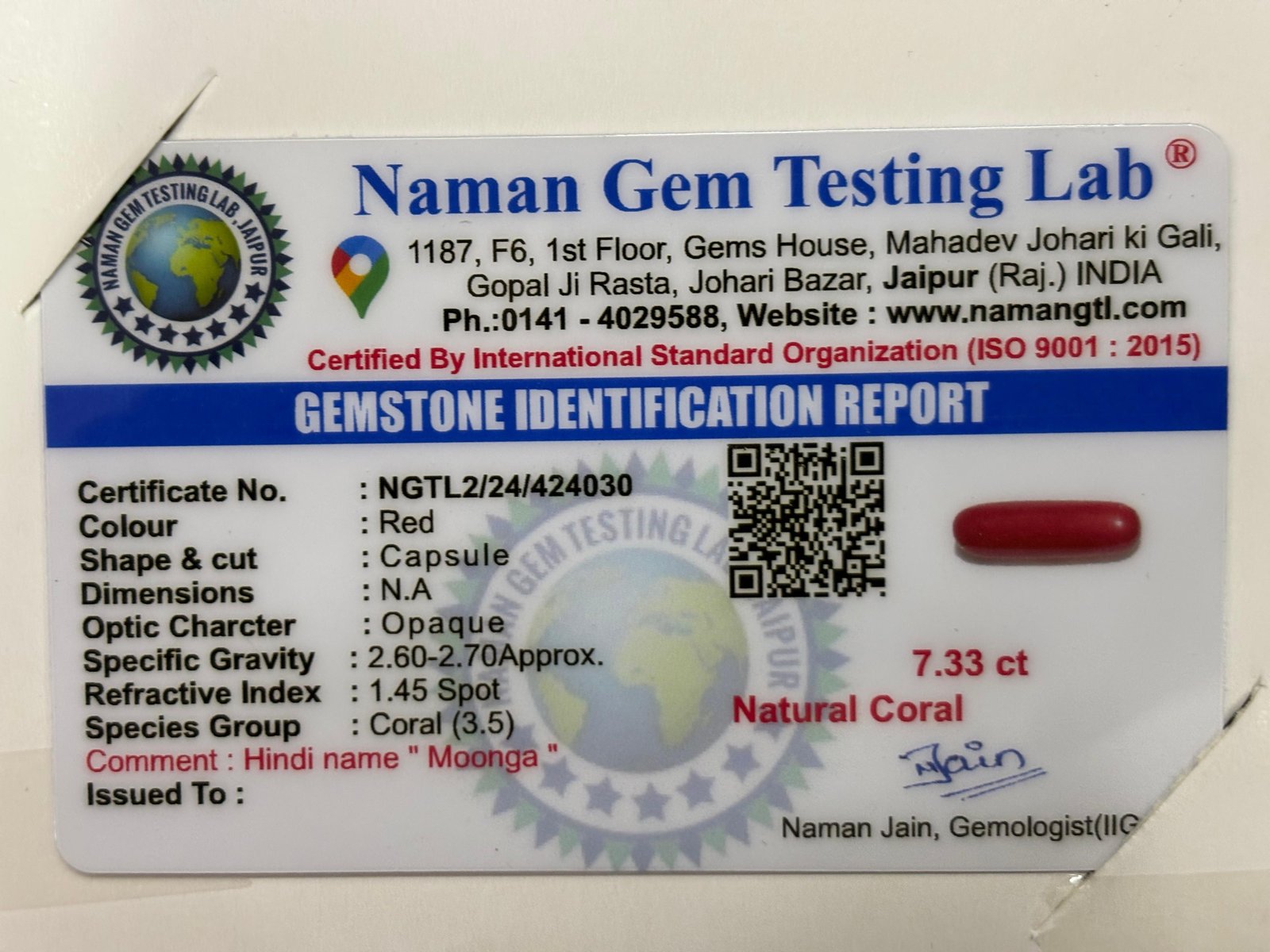 WEIGHT : 7.33 CARRAT (कैरेट)