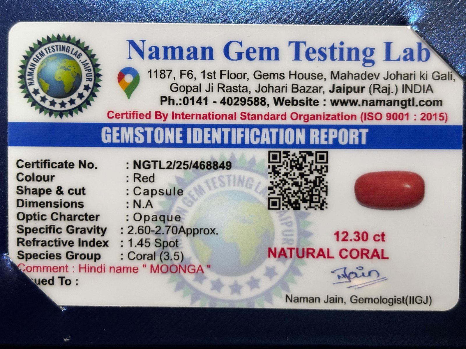 WEIGHT : 12.30 CARRAT (कैरेट)