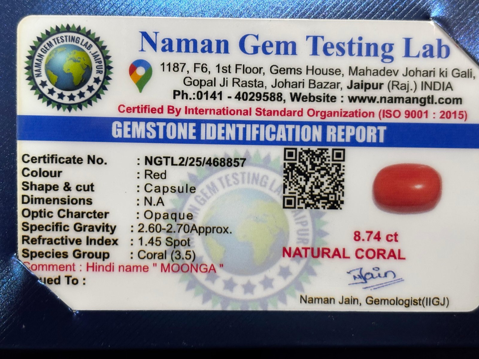 WEIGHT : 8.74 CARRAT (कैरेट)