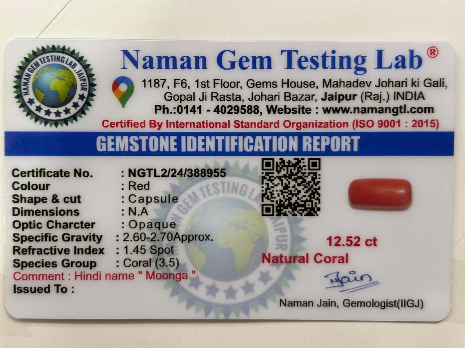 WEIGHT : 12.52 CARRAT (कैरेट)