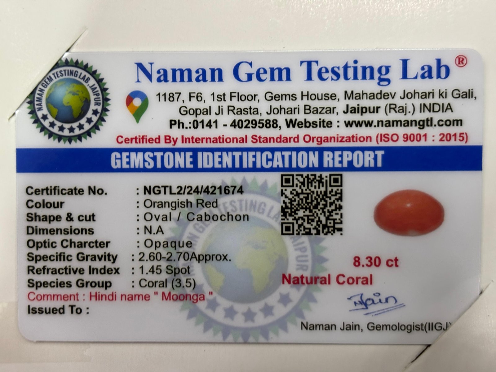 WEIGHT : 8.30 CARRAT (कैरेट)
