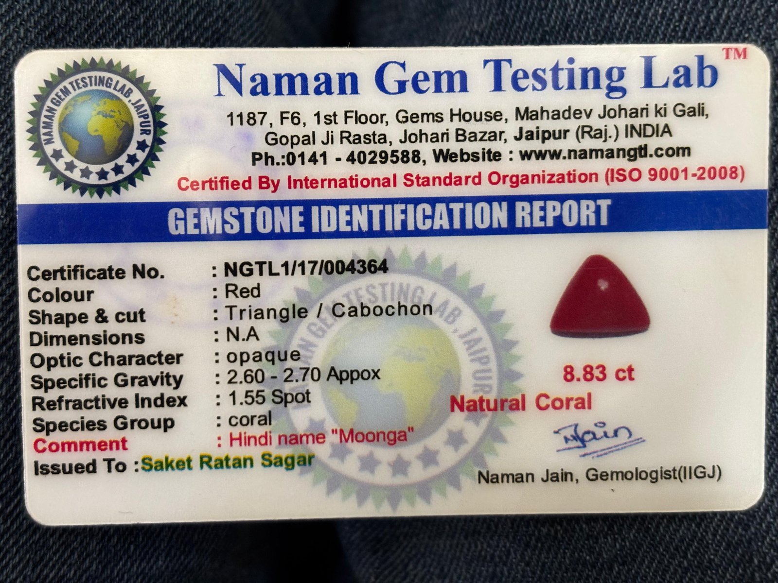 WEIGHT : 8.33 CARRAT (कैरेट)