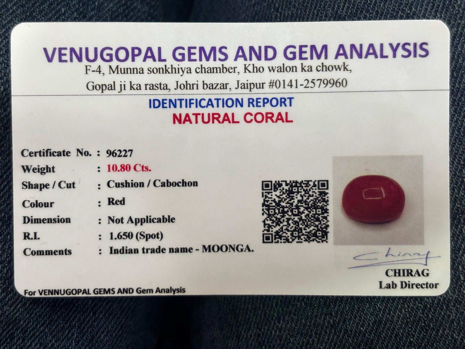 WEIGHT : 10.80 CARRAT (कैरेट)