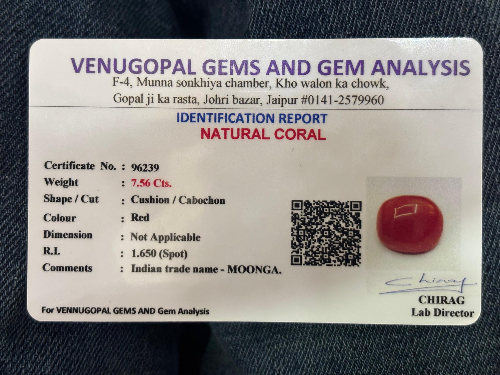 WEIGHT : 7.56 CARRAT (कैरेट)