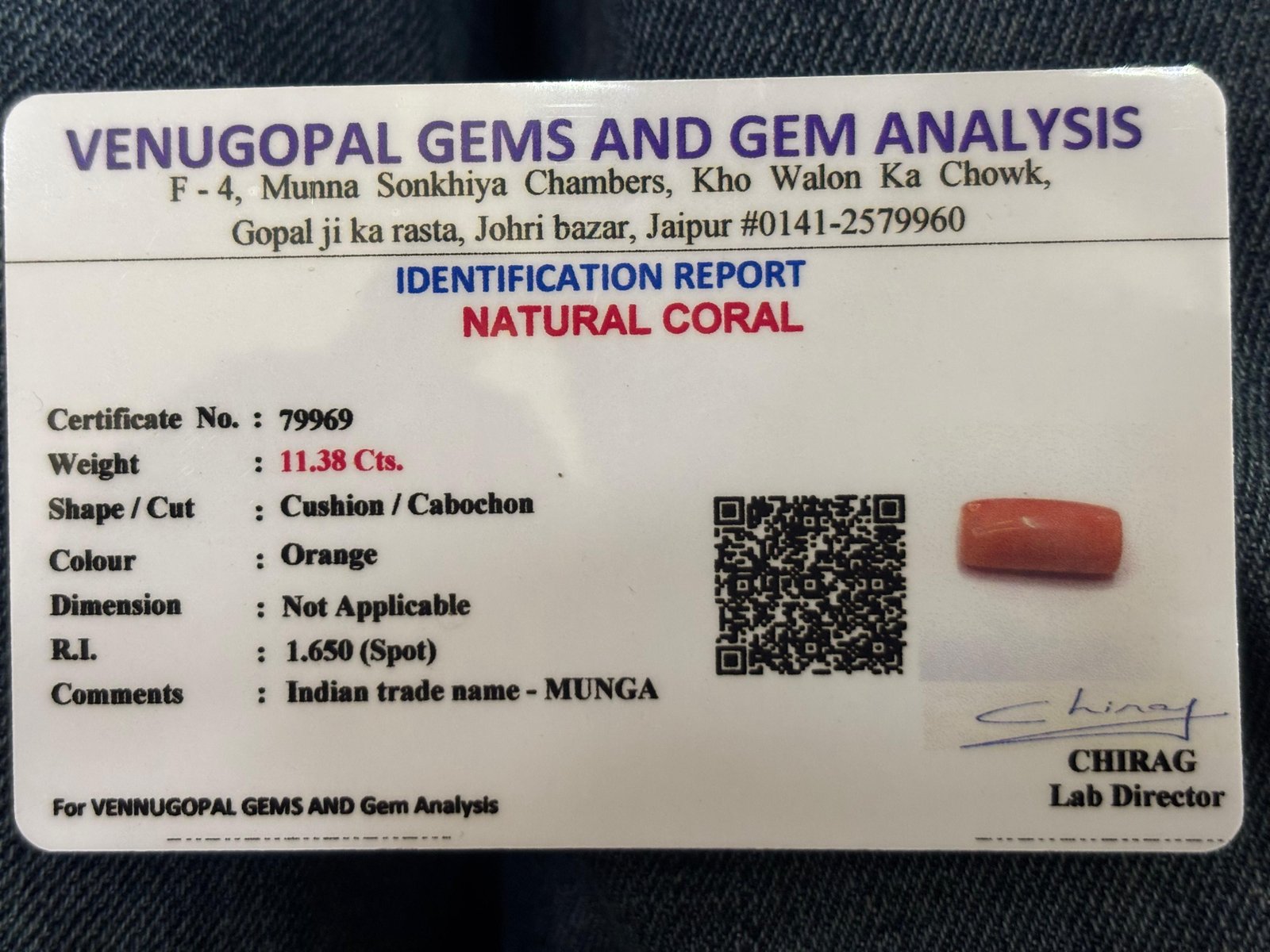 WEIGHT : 11.38 CARRAT (कैरेट)