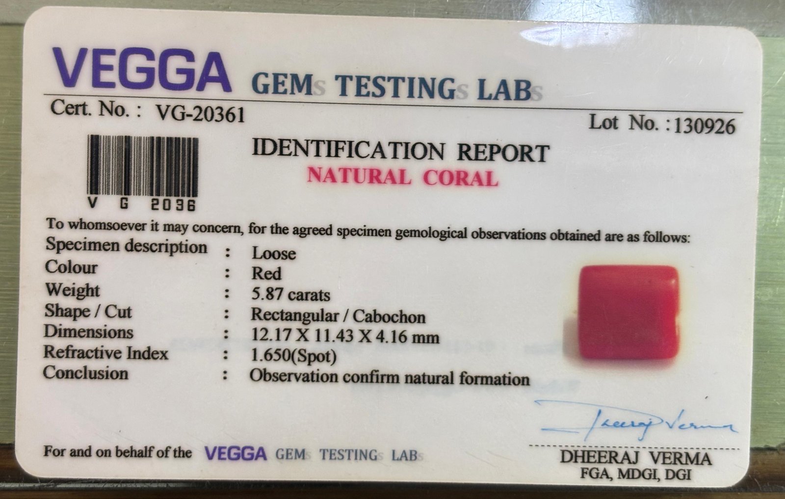 WEIGHT : 5.87 CARRAT (कैरेट)