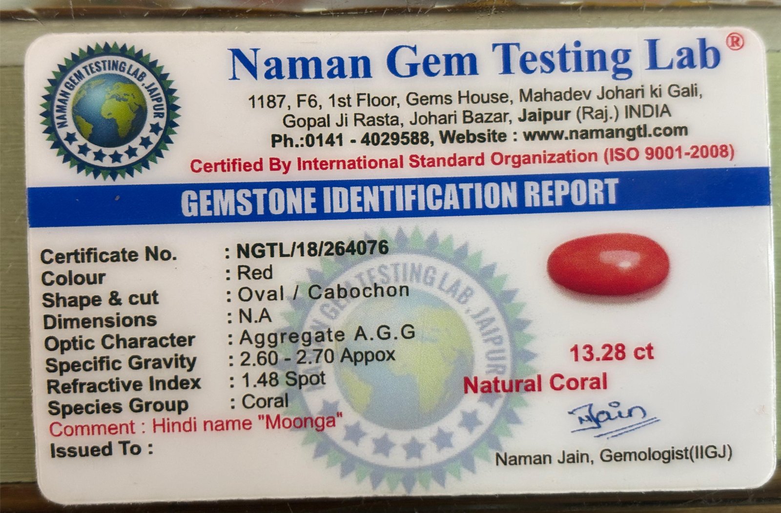 WEIGHT : 13.28 CARRAT (कैरेट)