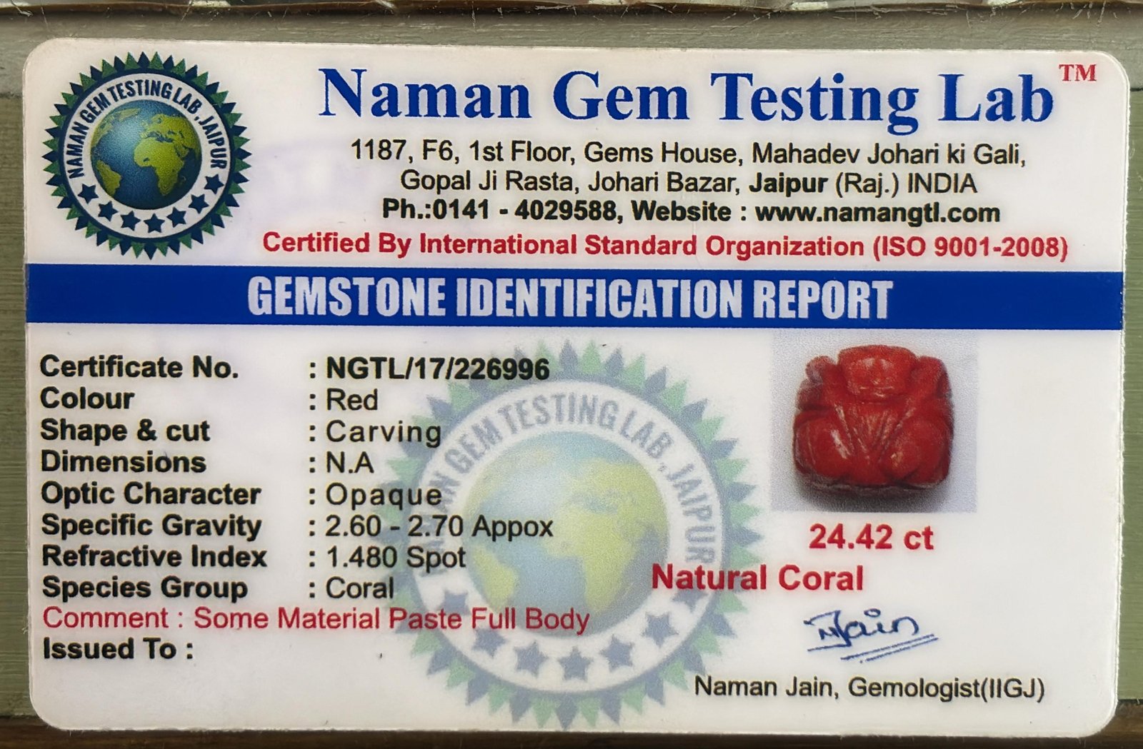WEIGHT : 24.42 CARRAT (कैरेट)